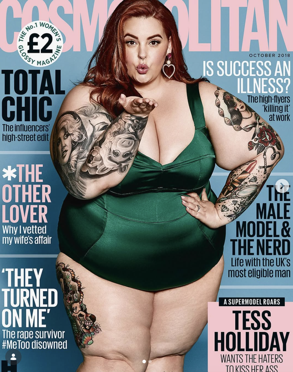 Depuis lors, le body positive a été critiqué et accusé d’enjoindre à l’amour de son corps [32], de générer de nouvelles formes d’oppression et d’exclure les femmes racisées ou les corps obèses en créant un nouvel idéal « acceptable » ainsi que de nouvelles normes [33]. Il a par ailleurs été accusé de se dépolitiser et de se transformer en style de vie consommable, se faisant complice de logiques marchandes néolibérales adeptes du pinkwashing, façon de se positionner comme un allié de la diversité, mais en façade seulement. Même des militantes historiques du mouvement, pourtant porteuses d’un discours particulièrement engagé, à l’instar de Tess Holliday, ont été accusées de céder à des logiques commerciales et, de facto, de se rallier aux normes corporelles dominantes. Des vidéos moquant l’évolution de ses prises de position ont ainsi circulé, l’accusant de « tourner sa veste » [34], voire la désignant comme une traîtresse aux yeux d’une partie de sa communauté ; autant de tensions qui s’inscrivent en réalité dans un contexte plus large.