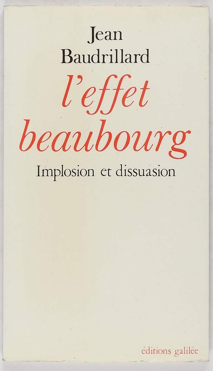 [6] Jean Baudrillard, L’Effet Beaubourg. Implosion et dissuasion, Paris, Galilée, 1977.