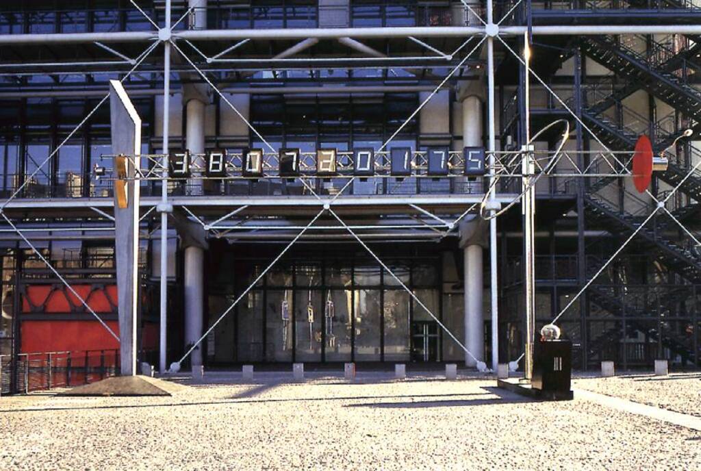 Enfin, le Centre Pompidou a subi une lourde rénovation à la fin des années 1990, jusqu’à l’orée de l’an 2000, il en vit encore une autre pendant cinq ans : je trouve qu’il y avait quelque chose de prophétique dans le message de Baudrillard. C’est quand même un bâtiment qui au bout d’un demi-siècle aura subi deux cycles de rénovation de presque deux fois cinq ans. Un quart de sa vie aura été entravée par les travaux successifs qui s’y seront déroulés. Il y a une sorte de monument qui symbolise bien ça, c’est le Génitron ! C’était un fameux compteur qu’on avait installé en 1987 avec des chiffres mécaniques, qui devait opérer le décompte de l’an 2000. Il a été inauguré par Mitterrand avec un enfant de 7 ans, qui aurait donc eu 20 ans en l’an 2000. Il a été mis à la poubelle à la première rénovation du centre, avant même que l’an 2000 n’arrive [8]. Il incarne l’effet Beaubourg dénoncé par Baudrillard et cette tendance contradictoire à faire détruire la culture par la participation des usagers eux-mêmes.