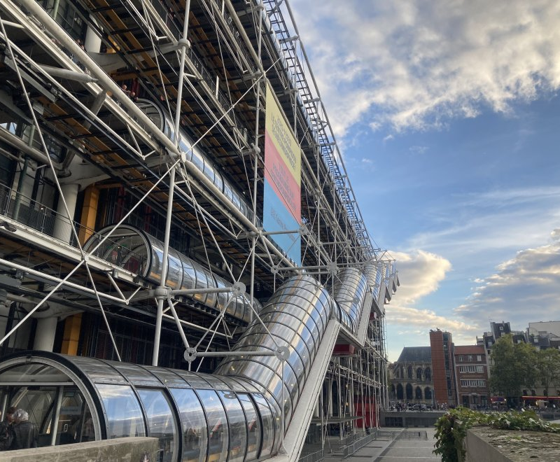 Achevé en 1977, le projet d’un centre culturel à Beaubourg avait été lancé par Georges Pompidou dix-huit mois à peine après Mai 1968. Ce contexte politique tendu anime les réflexions des concepteurs du Centre, partagés entre volonté de réconciliation sociale et ouverture aux subversions artistiques.