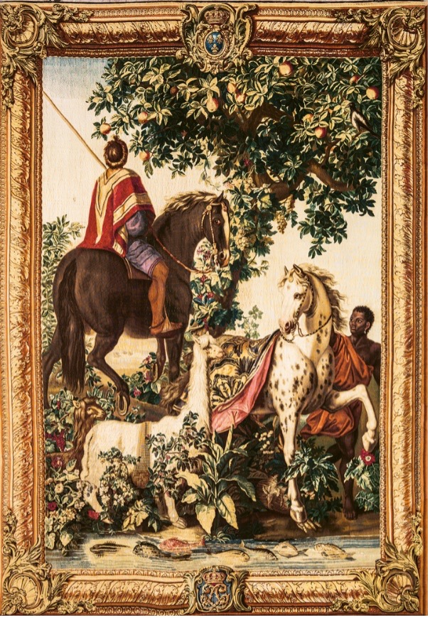 Fig. 3 - L’Indien à cheval de la Tenture des Indes, 6e série, tapisserie haute lisse d’après le carton d’Albert Eckhout, v 1644-1652, Rome, Villa Médicis.