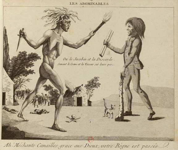 Source : BNF, RESERVEQB-370 (48)-FT4, Les abominables ou le jacobin et la Discorde semant le crime et la terreur sur leurs pas. Ah ! Méchantes canailles, grâce aux dieux, votre règne est passé, anonyme, 1794-1799.